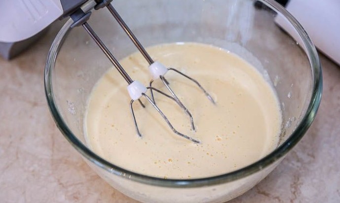 Для приготовления заварного медового теста растереть яйца с сахаром до посветления массы.