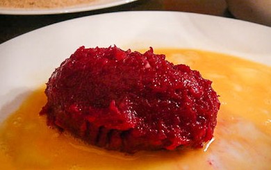 Котлеты готовят из куриного филе или готового куриного фарша, в который добавляют измельченную вареную свеклу. В каждую сформованную котлету кладут брусочек сыра, после чего обваливают её в панировочных сухарях и жарят до готовности. Для приготовления котлет вам потребуется: куриное филе (или куриный фарш) - 500г сыр - 50г репчатый лук - 1 луковица свекла (вареная) - 2 шт. соль, перец, панировочные сухари - по вкусу яйцо - 1шт. лавровый лист для соуса: кефир лимон соль перец хрен. Рецепт котлет: Из куриного филе приготовим мелкий фарш. Лук, свеклу измельчим в блендере и добавим к фаршу. Посолим, поперчим и вымесим однородную массу. Котлеты из куриного фарша я формирую двумя столовыми ложками. Меньше липнет к рукам, и получаются одинаковые по размеру. В серединку кладем брусочек сыра. Обмакиваем в яйце. Обваливаем в панировке. И получаем вот такие ровненькие котлетосики, готовые к жарке. Обжарим и протушим с лаврушкой и перцем. Для соуса нам нужен кефир. Поперченный и посоленный. И выдавим туда лимонный сок (все на вкус). Добавим хрен. Мне очень понравился этот рецепт. Соус отлично подходит к котлеткам! 11 котлеток мне обошлось примерно в 5.00 евро. Это, если предположить, что яйца, лук, масло и панировочные сухари у нас уже есть дома. Сыр всегда можно исключить. Вроде недорого, но очень вкусно. подробный рецепт на .