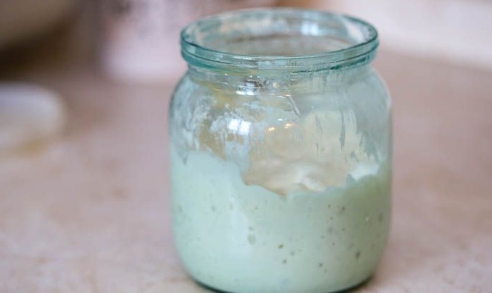 Для опары раскрошить дрожжи, развести теплой водой, добавить муку и хорошенько размешать. Оставить на 4 часа при комнатной температуры, затем убрать в холодильнике (4-8С) на сутки. Готовая опара удвоится в объеме.