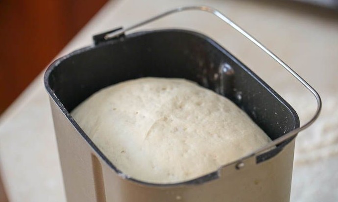 Тесто для пиццы бьянки я замешивала в хлебопечке - быстрее и руки свободны. В моем случае хлебопечка однозначно сделает это лучше меня. Дрожжи предварительно распустила в теплой воде, вылила в контейнер, добавила остальные ингредиенты, включая половину готовой опары (130г). Вымешиваю примерно 20 минут. Оставить для расстойки на 2 часа, один раз обминая.