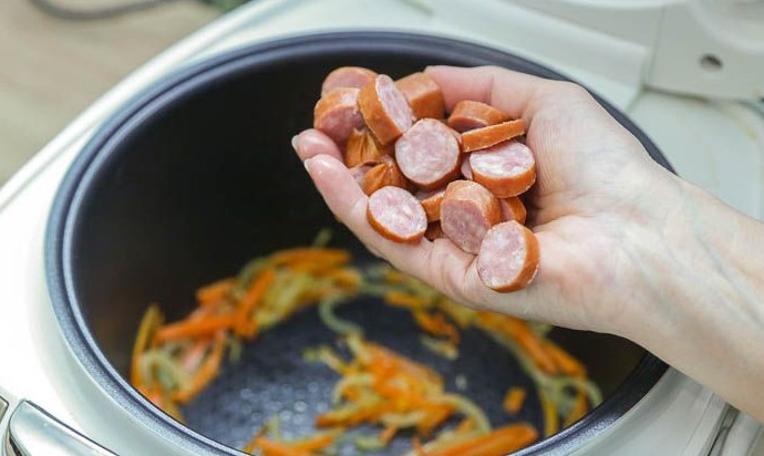 Поджарка из куриной печени с копчёными колбасками в мультиварке - «Кулинария»