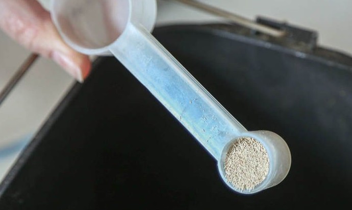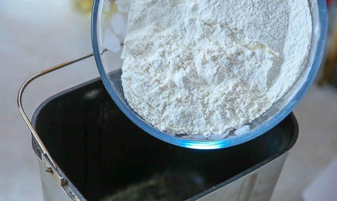 Подготовить все продукты для выпечки хлеба. Мне удобнее замешивать тесто в хлебопечке, но можно делать это руками. Муку перед замесом обязательно просеять. Воду слегка подогреть. Закладывать продукты в контейнер в той последовательности, которая указана в инструкции к вашей хлебопечке. У меня сначала идут дрожжи,