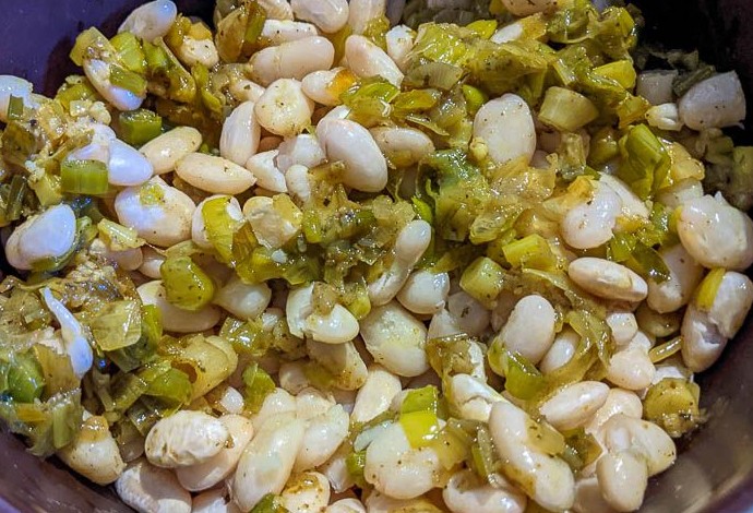 Смешиваем фасоль и лук, поливаем всё 5 ст.л. растительного масла.