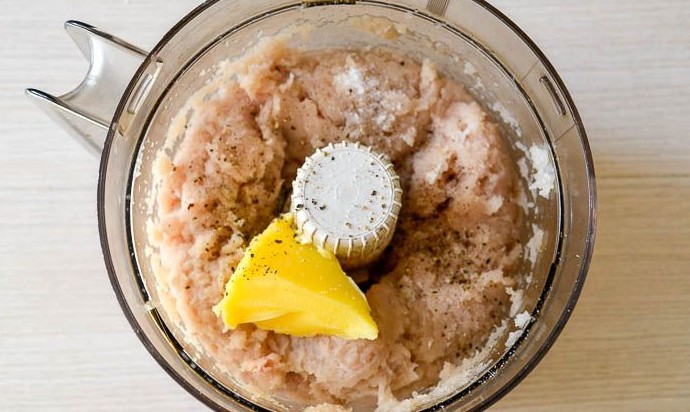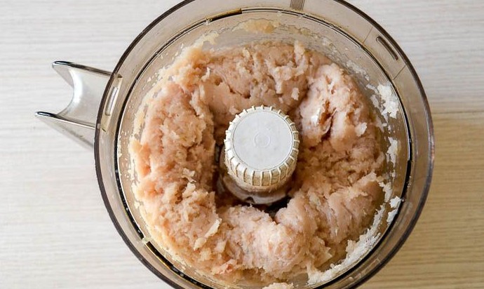 Чтобы получить однородную, нежную рыбную массу, готовый фарш еще раз измельчите в кухонном комбайне.