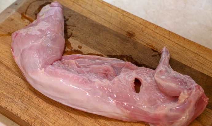 Тушку кролика (или его бедрышки) вымыть под холодной водой и обсушить на бумажных полотенцах.