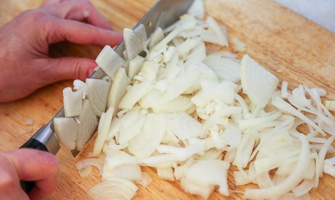 Лук очистить, порезать, как вам больше нравится.