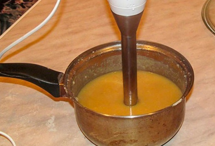 Можно было аутентично потолочь толкушкой не разварившиеся остатки. Но я все же решила вжикнуть его блендером, мы все-таки не при царе Горохе живем. На этом этапе его нужно посолить по вкусу.