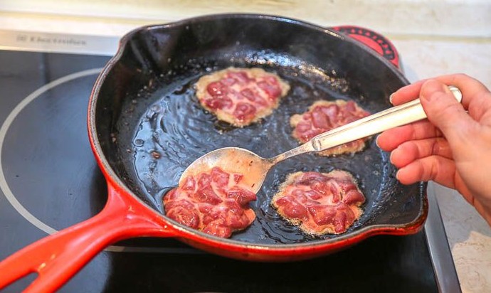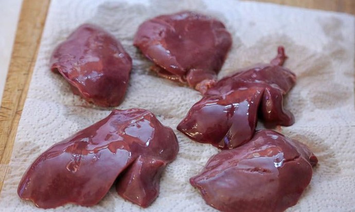 Печень вымыть, срезать протоки, если они остались, обсушить на бумажных полотенцах.