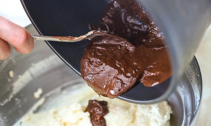 Разделить творожную массу на 3 неравные части. К самой меньше части примешать растопленный белый шоколад. К средней части - молочный шоколад, и к самой бОльшей по объему творожной массе добавить горький шоколад. Каждую массу взбить миксером. Получится 3 разные по объему и цвету творожные массы.