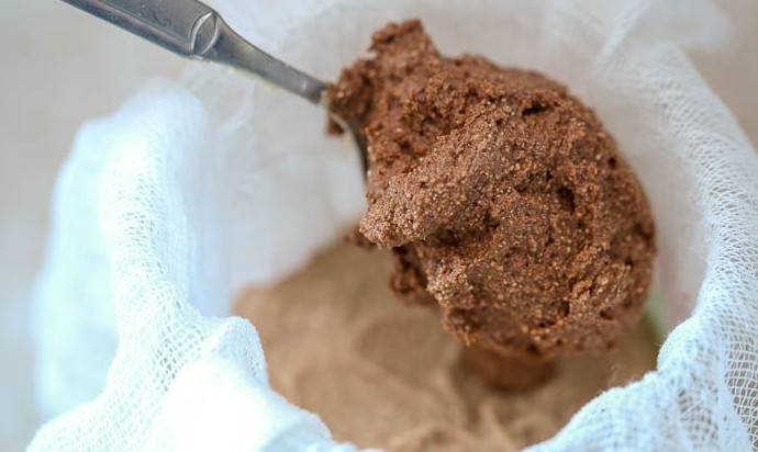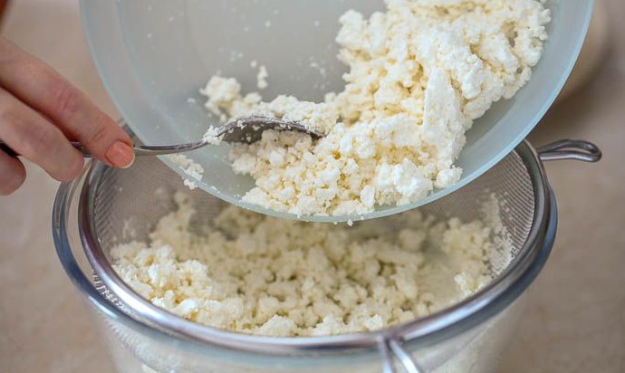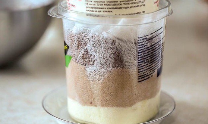 Сначала приготовить творожную массу, которая станет основой для всех трех слоев шоколадной пасхи. Для этого творог протереть ложкой через металлическое сито, чтобы придать ему воздушности.