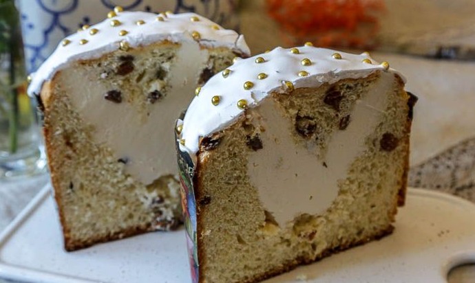 А вот так куличи с начинкой из заварного крема выглядят на разрезе. Правда же, красиво? Попробуйте приготовить, эти куличи и вкусные, и красивые.