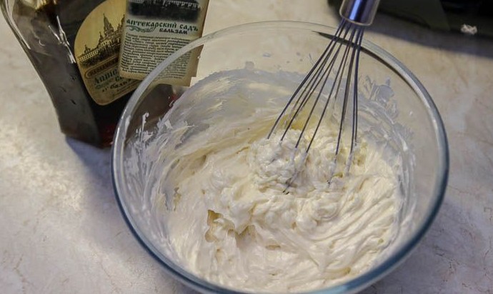 Мягкое сливочное масло (оно должно быть той же температуры, что и сливочное масло), хорошо взбить миксером. Ароматизировать масло ванилином или коньяком. Во взбитое сливочное масло добавлять по 1-2 ст.л. заварного крема, продолжая взбивать массу миксером на средней скорости.
