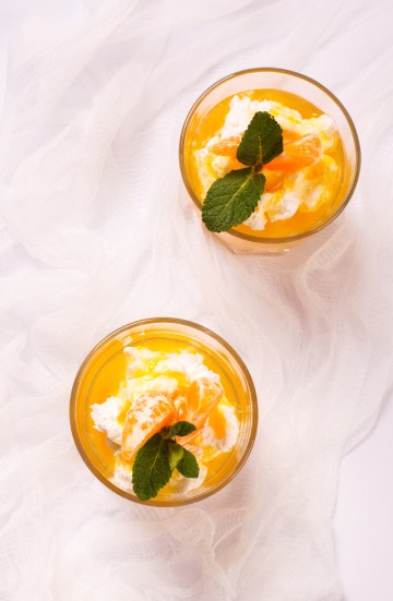 Для десерта взять стакан. На дно стакана выложить слой крема из творога, сметаны и сгущенного молока, а затем добавить слой из пюре хурмы. Снова выложить слой крема из творога, сметаны и сгущенного молока, а после - пюре их хурмы. Продолжать до края стакана. Сверху украсить десерт 2-3 листками мяты.