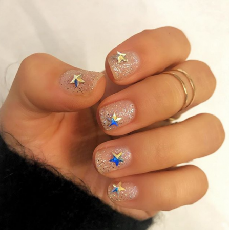 Даже если ты любишь классику и однотонное покрытие, в Новый год предлагаем все же поэкспериментировать с маникюром. Добавь блеска и сияния с помощью глиттера, стразов и различных украшений. Показываем, как сделать это круто.