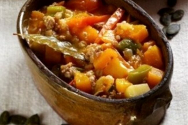 Ингредиенты: 400 г свинины ---------------------- 100 г репчатого лука ---------------------- 150 г моркови ---------------------- 6 огурцов ---------------------- 1 цукини ---------------------- 1 лавровый лист ---------------------- перец черный молотый ---------------------- соль Приготовление: ШАГ 1 Обрезать с мякоти свинины жир и разрезать ее на куски, мясо натереть перцем и дать постоять. ШАГ 2 Измельчить лук на мясорубке или приготовить луковое пюре в блендере, все овощи нарезать кружками. ШАГ 3 Выложить слоями в неглубокую кастрюлю овощи: половину огурцов, морковь, мясо, лук, цуккини, снова огурцы. ШАГ 4 Залить в кастрюлю кипяток, последний слой огурцов должен лишь слегка покрываться водой. ШАГ 5 Готовить блюдо на сильном огне, довести до кипения, а потом варить до мягкости мяса, свинина с огурцами, морковью и цуккини должна настояться после окончания варки 15-20 минут. ШАГ 6 Мясо и овощи разложить по тарелкам и подать с греческим йогуртом. Приятного Вам аппетита!