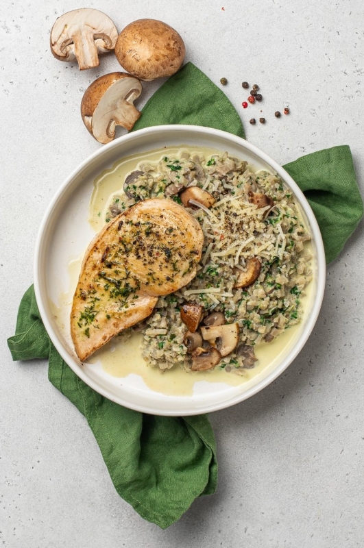 Да, да, вместо риса в этом блюде используется цветная капуста. Сочетание такого «риса» с курицей, грибами и трюфельным соусом воссоздает вкус классического ризотто, только более утонченного, легкого.