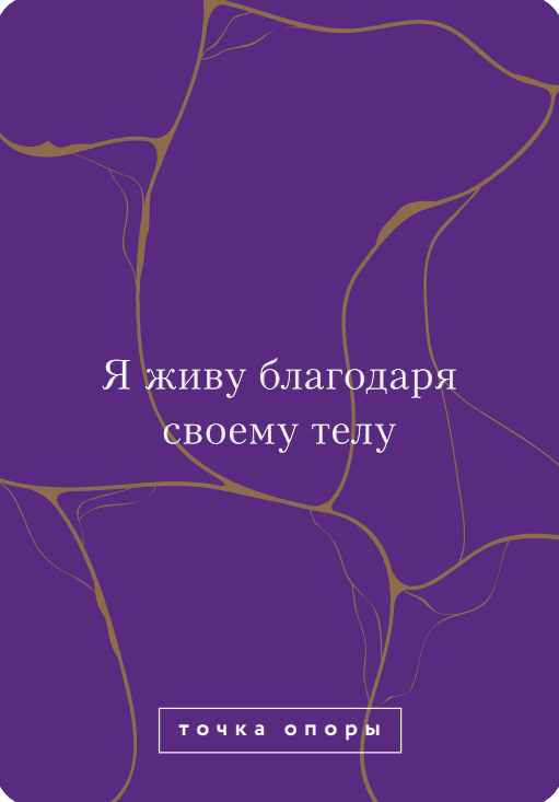 Практика: регулярно благодарите тело за то, что оно вам дает. Обнимите себя и скажите вслух: «Спасибо тебе, что служишь мне так верно».