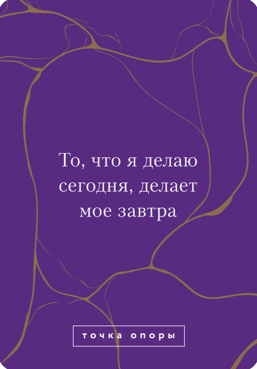 Внутренняя опора — это наша способность чувствовать себя устойчиво, даже когда внешние обстоятельства меняются. Это ощущение безопасности, которое исходит не от окружающего мира, а изнутри. Заглянули в книгу психолога Анны Бабич «Внутренняя опора» и новую колоду «Я — ок» и выбрали 6 ориентиров, которые помогут ее нащупать. Я всегда ОК и могу испытывать любые чувства «Я — ок» — это основа внутреннего баланса. Оно позволяет воспринимать себя без постоянных сомнений и критики, осознавать свою ценность независимо от обстоятельств. Это состояние дает уверенность, что в любой ситуации с нами все в порядке. Попробуйте найти и зафиксировать основные пазлы, из которых складывается это состояние. Чек-лист ниже поможет в этом. Я — ок, когда не достигаю успеха. Я — ок, даже если другой человек мной недоволен. Я — ок, когда ко мне относятся хорошо и уважительно. Я не удивляюсь, не смущаюсь, не чувствую себя в долгу, потому что знаю: я действительно этого заслуживаю. Я — ок, даже если не совершаю ничего полезного. Я — ок, когда нуждаюсь в отдыхе. Я — ок, когда мне грустно и нужна поддержка. Я — ок, когда ошибаюсь. Я — ок, когда испытываю любые чувства, даже те, которых принято стыдиться (гнев, зависть, грусть). Я — ок, когда совершаю «нехорошие» поступки, потому что моя личность больше ситуации. Я — ок не только когда мне хорошо и я в ресурсе. Я — ок, когда мне плохо и нет сил. Любое мое состояние нормально. Практика: в течение дня напоминайте себе, что с вами все в порядке. Наблюдайте за своими состояниями и эмоциями, принимайте их и повторяйте: «И это тоже нормально. Я — ок». Как я сейчас? Главная причина множества психологических сложностей — это неспособность распознавать и проживать свои эмоции. Мы ощущаем целый спектр чувств — радость, гнев, обиду, тревогу, благодарность, но не всегда осознаем их. Два алгоритма помогут поработать с эмоциями и научиться лучше понимать себя: Начните с вопроса: «Что я чувствую сейчас?» Позвольте чувству, которое вы опознали, быть. Оно не делает вас хуже, а лишь отражает внутренний процесс. Выразите его: если грустно — поплачьте, если злитесь — покричите, порвите бумагу или потопайте ногами, если страшно — подвигайтесь. Второй алгоритм помогает связать чувства с событиями, которые его вызвали. Он называется «четырехчастное высказывание»: Опознайте и назовите чувство: например, страх. Найдите причину: например, отсутствие финансовой поддержки. Осознайте, что это значит для нас: в данном случае, необходимость справляться самостоятельно. Сформулируйте, что вы хотите вместо этого. Практика: время от времени мониторьте свое состояние с помощью вопросов: «Как я себя чувствую? Что у меня сейчас с уровнем энергии и сил? Как ощущает себя мое тело? Каково мое эмоциональное состояние? Что мне сейчас нужно, чтобы чувствовать себя лучше?» Ценности позволяют выстроить жизнь навстречу себе Знание своих ценностей — это один из главных ориентиров внутренней опоры. Когда человек понимает, что для него действительно важно, он может принимать решения, исходя из своего внутреннего компаса, а не из ожиданий других людей. Что такое ценности? Ценности — это не цели. Цель можно достичь и забыть, а ценность — это ориентир, который направляет нас всю жизнь. Это путь, а не пункт назначения. Можно сколько угодно говорить: «Для меня главное — здор