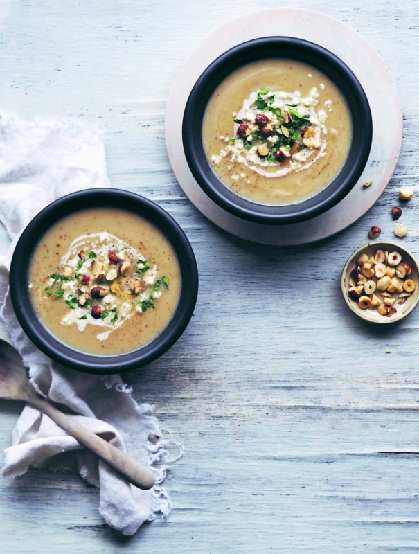 Цветная капуста в этом душевном супчике (питательном супе) делает его по-настоящему кремообразным, и он понравится даже людям, которые не в восторге от цветной капусты. Цветная капуста принадлежит семейству капустных, известному своим воздействием на сбалансированность гормонального фона и выведение эстрогенов. А если сделать его на свежем курином бульоне, то он еще будет и питательным, и полезным для пищеварения. Сыр фета, петрушка и фундук в качестве добавок придадут аромат.
