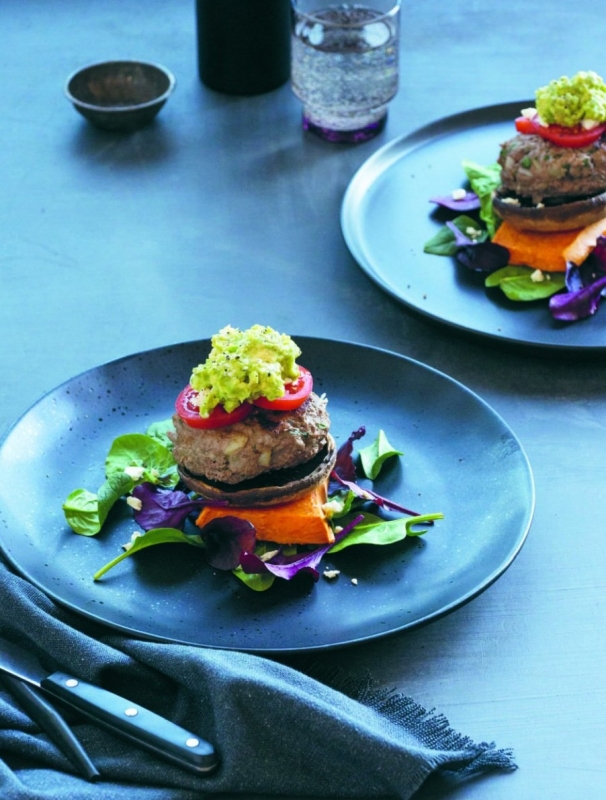 Эти бургеры — первые по популярности в моей семье. Бургеры любят все, но пшеничные булочки и картофель фри на гарнир превращают их в совсем неполезную еду. В этом рецепте сохраняется скромное очарование бургера с полезным сладким картофелем для балансировки питательных элементов. Котлетки для бургера прекрасно замораживаются, поэтому можно их сделать заранее и в большом количестве. Можно, конечно, купить и готовые котлетки в местном мясном (не забудьте выяснить ингредиенты). А если вы попробуете открытый бургер с грибами, вы забудете о булочке!