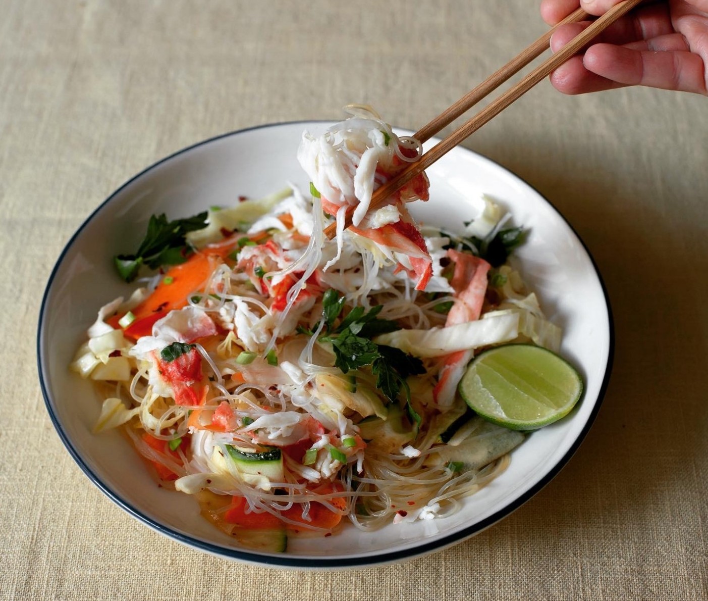 Самое простое и вкусное, что хочу порекомендовать – салат из белокачанной капусты. Ее нужно тонко нашинковать (желательно, чтобы это была молодая, сочная капуста), добавить нарезанный огурец, помидоры черри, сладкий перец, заправить все оливковым маслом, немного соевого соуса, чили, меда. Для того, чтобы сделать блюдо более питательным, в него можно добавить на выбор: куриное филе, краба, тунца, лапшу фунчезу. В результате вы получаете не просто салат, а полноценный обед, который готовится очень быстро.