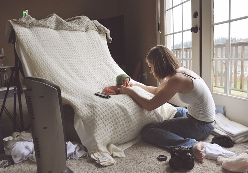 Важно, чтобы студия, в которой будет проходит съемка новорожденного, была комфортной и безопасной. Температура в помещении не должна опускаться ниже 22 градусов, а после каждой фотосессии комнату необходимо проветривать и кварцевать.