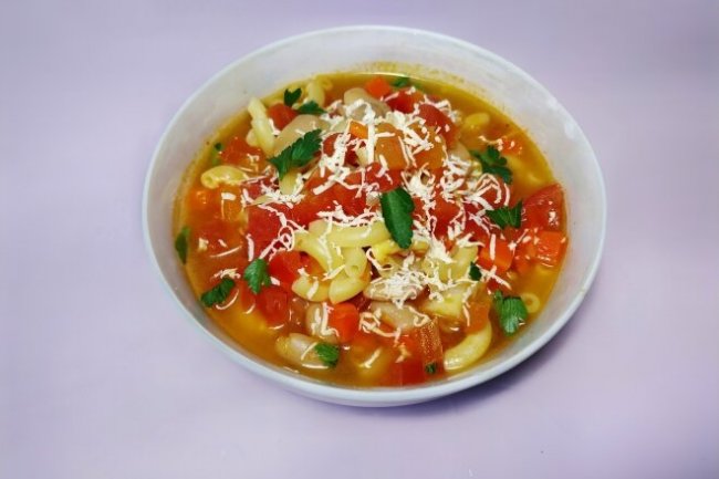 Суп с макаронами, консервированной фасолью и помидорами - «Первое блюдо»