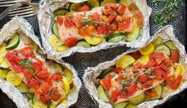 Лосось запеченный с овощами в фольге - «Второе блюдо»