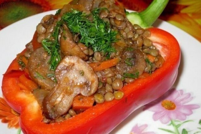 Ингредиенты: чечевица зеленая 1 стакан ---------------------- грибы 300 г ---------------------- перец сладкий болгарский 1 шт. ---------------------- лук репчатый 1 шт. ---------------------- морковь 1 шт. ---------------------- соус ткемали 3 ст.л. ---------------------- масло растительное 2 ст.л. ---------------------- прованские травы по вкусу ---------------------- перец душистый по вкусу ---------------------- соль по вкусу ---------------------- зелень Приготовление: Шаг 1. Хорошо вымыть чечевицу и положить в кастрюльку. Налить 2,5-3 стакана воды, довести на огне до кипения. Шаг 2. Когда закипит, сделать огонь тише, посыпать солью. Готовить 20 минут, убрать пену. Чечевица должна стать мягкой, но сохранить форму. Если осталась жидкость, то слить ее. Шаг 3. Помыть и порезать на ломтики шампиньоны. Пожарить на растительном масле. Шаг 4. Помыть и почистить перец, лук, морковь. Нарезать и пожарить на сковороде. Шаг 5. Добавить несколько ложек соуса ткемали, посыпать перцем и солью, посыпать прованскими травами. Шаг 6. Переложить грибы в сковороду, размешать. Насыпать чечевицу, размешать. Подавать зеленую чечевицу с грибами и соусом ткемали, посыпав зеленью. Приятного Вам аппетита!