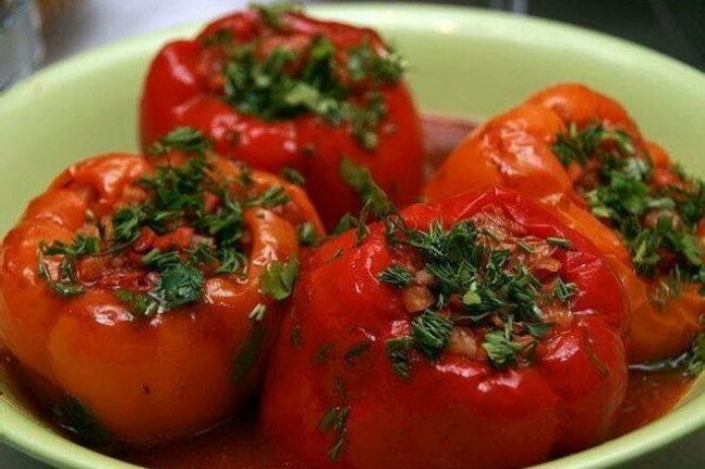 Перцы фаршированные овощами и рисом в томатном соке - «Второе блюдо»