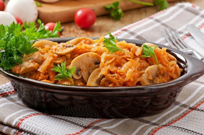 Тушеная капуста с грибами и мукой - «Второе блюдо»