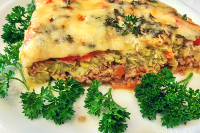 Запеканка из кабачков с фаршем, сыром и зеленью - «Второе блюдо»