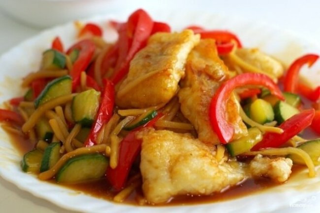Ингредиенты: филе рыбы 600 г ---------------------- томатный сок 200 мл ---------------------- масло оливковое 100 мл ---------------------- помидоры 4 шт. ---------------------- баклажаны 3 шт. ---------------------- перец сладкий болгарский 3 шт. ---------------------- цукини 2 шт. ---------------------- лук репчатый 1 шт. ---------------------- чеснок 2 зубчика ---------------------- тимьян 1 ч.л. ---------------------- перец черный молотый по вкусу ---------------------- соль по вкусу Приготовление: ШАГ 1 Филе нарезать небольшими кусочками, поперчить и посолить. ШАГ 2 Очистить репчатый лук, нарезать мелкими кубиками. ШАГ 3 Так же нарезать очищенный от семян сладкий болгарский перец. ШАГ 4 Удалить кожицу у кабачков цукини, нарезать тонкими кружками, помидоры – дольками, баклажаны – кубиками. ШАГ 5 На оливковом масле обжарить лук, добавить давленый чеснок. ШАГ 6 Все овощи положить в луковую обжарку, прогреть все вместе в течение пяти минут. ШАГ 7 Рагу досолить, добавить тимьян. ШАГ 8 В порционные горшочки для запекания выложить овощи, сверху – филе рыбы, подлить томатный сок. ШАГ 9 Тушить под крышками до готовности. СОВЕТ При подаче блюдо можно посыпать свежей зеленью укропа и петрушки. Приятного Вам аппетита!