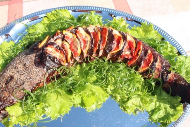 Сом фаршированный сыром и сладким перцем по на углях - «Второе блюдо»