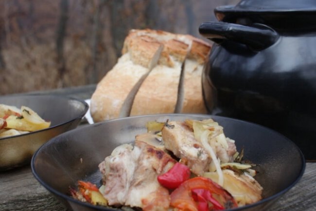 Свиные рёбрышки с овощами в горшочке на углях - «Второе блюдо»