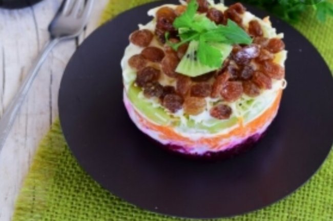 Слоеный салат со свеклой, морковью, киви и изюмом - «Закуски»