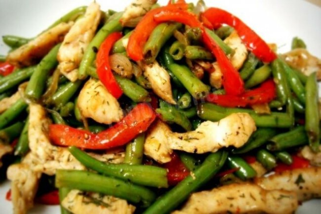 Тёплый салат с курицей, стручковой фасолью и сладким перцем - «Закуски»