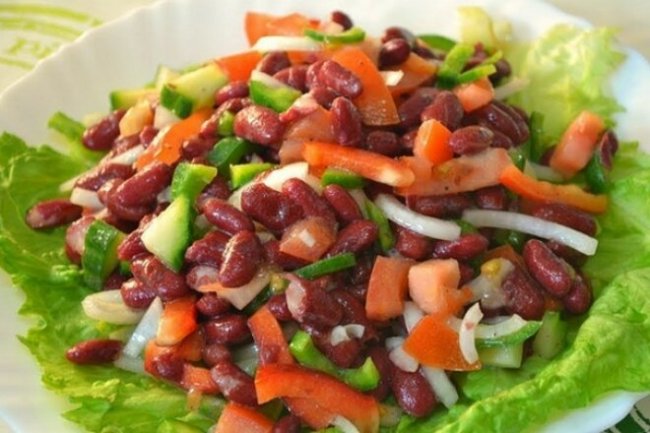Салат с фасолью, говядиной и орехами - «Закуски»