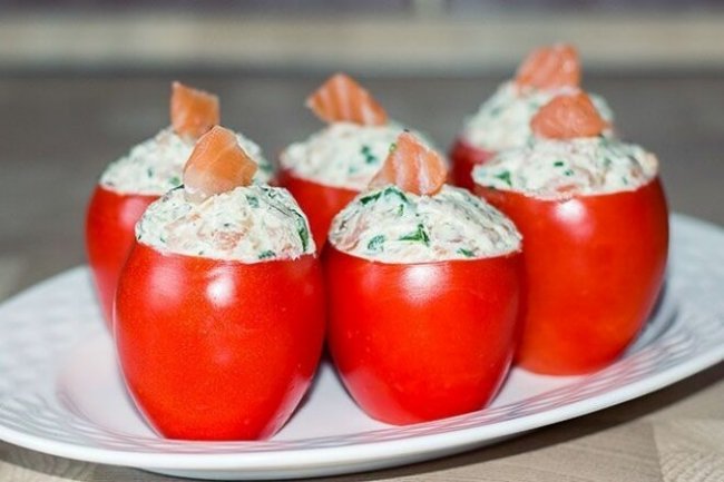 Помидоры, фаршированные красной рыбой с сыром - «Закуски»
