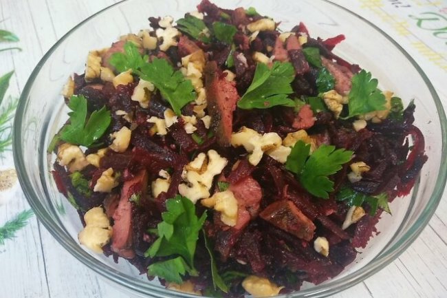 Салат из свеклы с печенью и грецкими орехами - «Закуски»