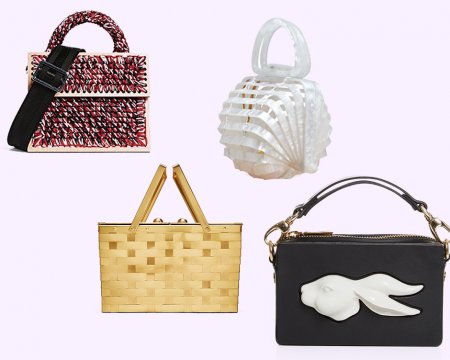 Маловероятно, что никто не обратит внимание на такой аксессуар. Сумки со вставками из пластика, дерева и керамики ужасно непрактичны, зато после выхода их можно поставить на видное место в квартире в качестве арт-объекта.