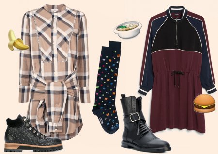 Огромное, безразмерное платье, напоминающее толстовку, — важный атрибут стиля гранж. Кто бы мог подумать, что этот предмет может стать своеобразным камуфляжем. Если тебе предстоит выбраться из квартиры за дополнительной порцией мороженого, ну или просто захочется прогуляться, включи в образ плотные колготки и грубые ботинки для трекинга.