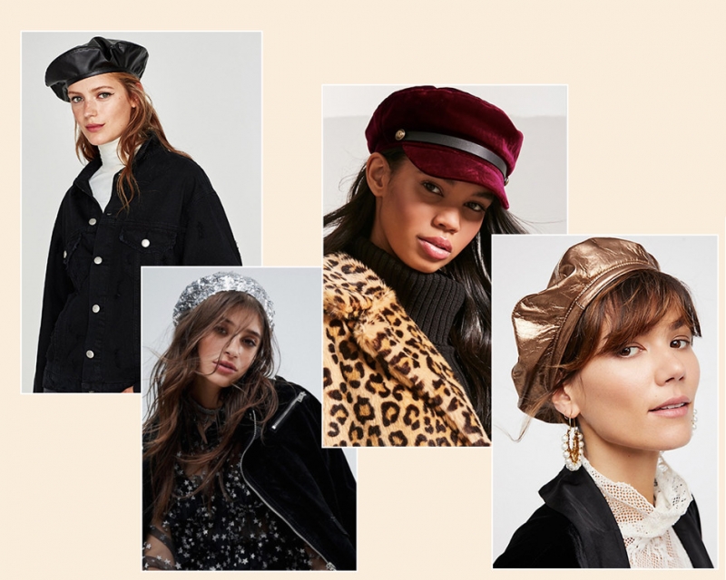 Самыми «горячими» аксессуарами сезона стали береты и кепки с накладным козырьком. Фетровые и шерстяные модели откладываются для прогулок. К праздничному образу выбираем бархатные аксессуары или береты, полностью усыпанные блестками.