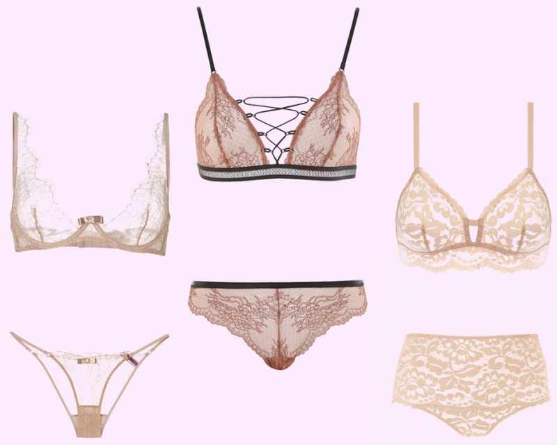 Maison Close; Topshop; Princesse tam.tam.Нужен комплект на каждый день, чтобы он был одновременно практичным, удобным, нарядным и, конечно же, подходил под большую часть одежды в гардеробе? Тебе нужно кружевное белье телесного оттенка. Незаметно практически под любыми вещами (за исключением совсем уж тонких материалов), а при этом радует душу.