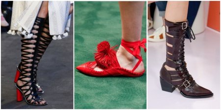 Altuzarra; Carven; Chloe.Обувь на шнуровке — непременный хит каждого лета. Впрочем, в этом году начинать тестировать его можно с приходом первого тепла. Конечно, сандалии-гладиаторы со множеством ремешков или яркие ленты, укладывающиеся в красивый бант на щиколотке, не очень пригодны для первых весенних дней, а вот сапогам, отдаленно напоминающим казаки, точно стоит устроить проверку.