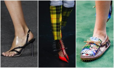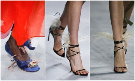 Формулировка «что-то новое, что-то старое, что-то взятое взаймы» идеально описывает обувные тренды нового сезона. Мы видели все эти идеи еще в прошлом сезоне, впрочем, наблюдать за их преображением очень интересно. Рассказываем, на какую обувь стоит обратить внимание.Шнуровка Altuzarra; Carven; Chloe. Обувь на шнуровке — непременный хит каждого лета. Впрочем, в этом году начинать тестировать его можно с приходом первого тепла. Конечно, сандалии-гладиаторы со множеством ремешков или яркие ленты, укладывающиеся в красивый бант на щиколотке, не очень пригодны для первых весенних дней, а вот сапогам, отдаленно напоминающим казаки, точно стоит устроить проверку. Белый цвет Chloe; Simone Rocha; Stella McCartney. Обувь белого цвета вошла в моду еще прошлой весной: так что, если ты уже купила пару лодочек или перчаточных туфель, порадуйся своей расторопности. Не будем ходить вокруг да около: белоснежную обувь (будь то хоть кроссовки, хоть дерби) практически невозможно носить в холодное время года. Лучше запастись терпением и дождаться хотя бы мая. Кроме того, самый популярный прием, подсмотренный на мировых подиумах — белый тотал-лук. У Simone Rocha — воздушные юбки из кружева и тюля, у Stella McCartney — брюки, а у Chloe — белоснежные платья из шелка. Перья Marni; Saint Laurent. Наверное, самое роскошное нововведение этого года — перья, украшающие одежду, обувь и аксессуары. Кто-то из дизайнеров предлагает образы, будто вдохновленные карнавалом в Рио-де-Жанейро, но нам ближе скромный вариант с парой тонких, а иногда и не сразу заметных перышек на босоножках и туфлях. Вестерн Alexander Wang; Chloe; Givenchy. Казаки и ботинки в стиле вестерн оставались мощной осенней тенденцией два года подряд, а в этот раз решили задержаться еще и на весенний сезон, чему лично мы очень рады. Сапоги на плоском ходу можно комбинировать с укороченными джинсами, а ботинки — с нежными платьями. Особенно хорошо смотрятся пары с использованием змеиной кожи (или ее имитации). Каблуки необычной формы Alexander McQueen; Dolce Dries Van Noten. «Маркеры», «бокалы», «ананасы», «хрустальные шары», «слоны» — не случайный набор слов, а формы каблуков прошлого года. В новом сезоне ничего супернеобычного выделить нельзя. Разве что жемчужины и гербарий у Alexander McQueen. Прозрачные каблуки Balmain; Salvatore Ferragamo; Simone Rocha. Если с формой в этом сезоне решило поэкспериментировать очень небольшое количество брендов, то каблуки, напоминающие крупные ледышки, встречались на каждом втором показе. Высота, ширина и форма — самые разные. Особенно красивый вариант был у Simone Rocha: прозрачные каблуки в форме цветов. Текстиль Alexander McQueen; Erdem; Oscar de la Renta. Если твоя единственная текстильная пара в летний сезон —– эспадрильи или кеды, то пора срочно исправлять положение. Шелк, лен, хлопок, жаккард и твид могут составить неплохую коллекцию. Обязательно обрати внимание на лодочки с контрастным носом, вроде пары с показа Oscar de la Renta. Кровавые пятна — смелый ход, но в новых коллекциях будут и менее агрессивные варианты. С акцентом на детали Alexander Wang; Balenciaga; Carven. Мелкие детали — самая интересная часть любого модного показа. Иногда незаметные с первого взгляда жемчужины, спрятанные слоганы и разрезы формируют общую картинку не хуже тканей и общей направленности коллекции. Этот прием может сработать и с повседневным образом: бретели от бюстгальтера вместо ремешков, пестрые пейзажи на мокасинах или дл