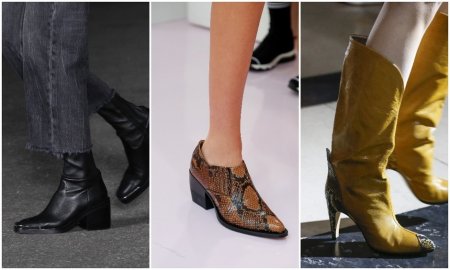 Alexander Wang; Chloe; Givenchy.Казаки и ботинки в стиле вестерн оставались мощной осенней тенденцией два года подряд, а в этот раз решили задержаться еще и на весенний сезон, чему лично мы очень рады. Сапоги на плоском ходу можно комбинировать с укороченными джинсами, а ботинки — с нежными платьями. Особенно хорошо смотрятся пары с использованием змеиной кожи (или ее имитации).