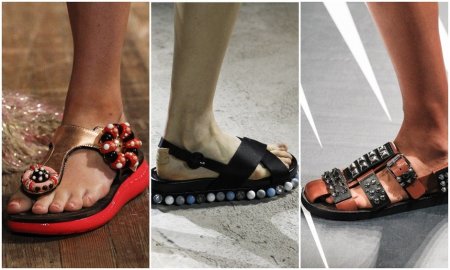 Marc Jacobs; Mary Katrantzou; Prada.Ортопедические сандалии опытного туриста — единственное наследие прошлогоднего тренда на «уродливую» обувь. Впрочем, некоторые модели выглядят даже мило. Запросто представляем их в компании с короткими платьями.
