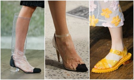Chanel; Oscar de la Renta; Simone Rocha.Прозрачные сапоги, лодочки и яркие сандалии-мыльницы смотрятся, конечно, замечательно, но носить их долго не получится точно. Две первые пары советуем приберечь для ответственных мероприятий (сапоги будут особенно актуальны во время майских гроз), а сандалии пригодятся в отпуске.
