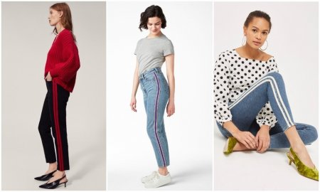Mango; Monki; Topshop.И брюки, и джинсы с лампасами — тот редкий пример, когда подчеркнуто спортивный элемент классно вписывается в контекст повседневной моды. К слову, кроме классических ярких полос, в этом сезоне будут популярны и лампасы в виде бахромы: яркая цитата из стиля вестерн.